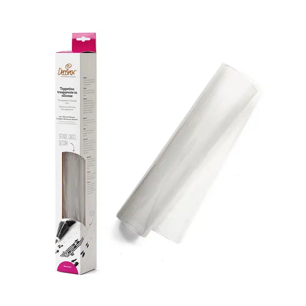 Deze Silicone Mat van Decora is gemaakt van 100% voedselveilige platina-siliconen. De non-stick mat is transparant en ideaal als werkblad voor het uitrollen en werken met fondant, marsepein, andere suikerpasta’s, deeg en meer. Door het transparante oppervlak is het eenvoudig om ontwerpen onder de mat te leggen en deze te volgen. De mat is geschikt voor zowel oven als vriezer, neemt geen smaakjes of geurtjes op en geeft dit ook niet af aan het voedsel op de mat. De mat is eenvoudig te reinigen. Bestand tegen temperaturen van -40 ° C + 230 ° C.