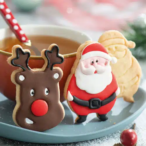 Vrolijke uitsteker van Decora voor het maken van kerstkoekjes in de vorm van Santa en Rudolph! Een feest op elke kersttafel of als leuke traktatie.
