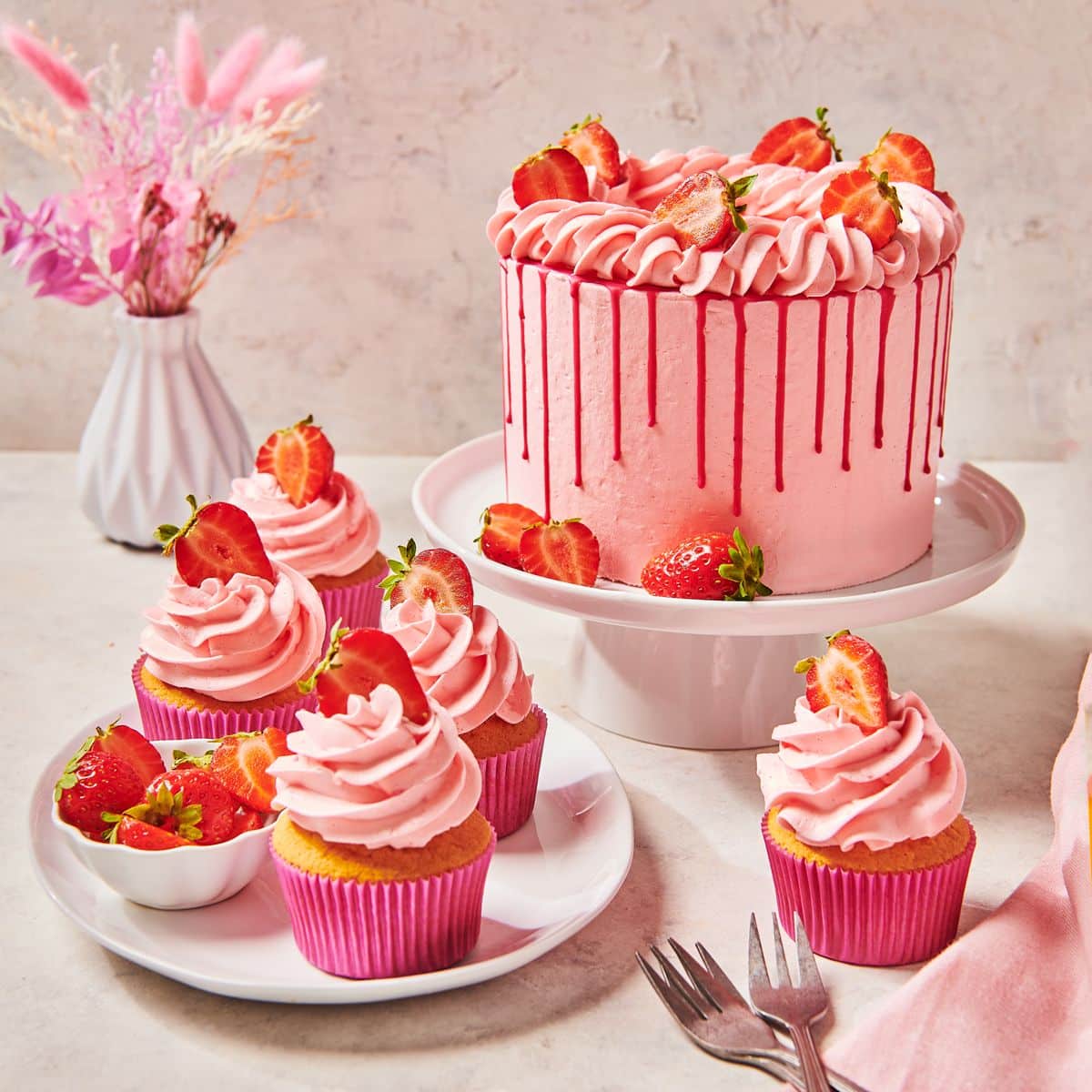 Maak kennis met de nieuwste versie van FunCakes Enchated Cream: die met aardbeiensmaak! Deze superluchtige crème is betoverend lekker en perfect voor het vullen en afsmeren van een taart, of als topping in een mooie swirl op cupcakes. Enchanted cream is vele malen lichter dan andere crèmes, maar behoudt alsnog perfect de vorm als je er toeven of rozetten mee spuit. Voeg melk of water en melk toe, een paar minuten mixen en je kunt direct aan de slag!