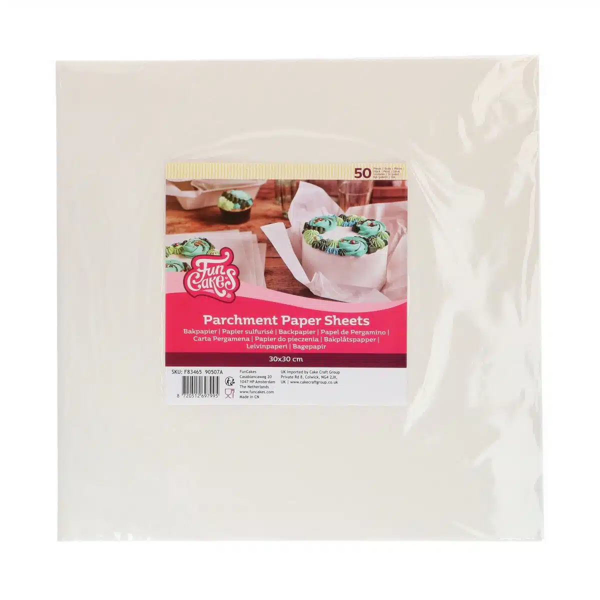 Pakket van 50 bakpapier vellen die niet alleen ideaal zijn voor het gebruik in de oven en het afbakken van koekjes en ander lekkers. Deze maat bakpapier van 30 x 30 cm is ook ideaal in combinatie met de Bento box van FunCakes. Plaats het bakpapier op de boden en zet je taartje er bovenop. Zo presenteer je jouw Bento cake op een mooie manier!