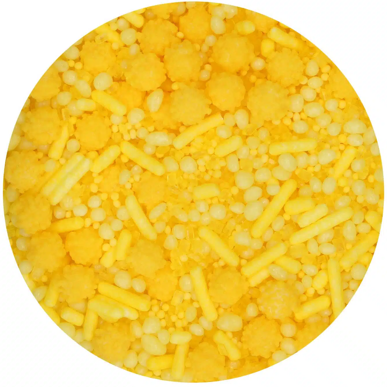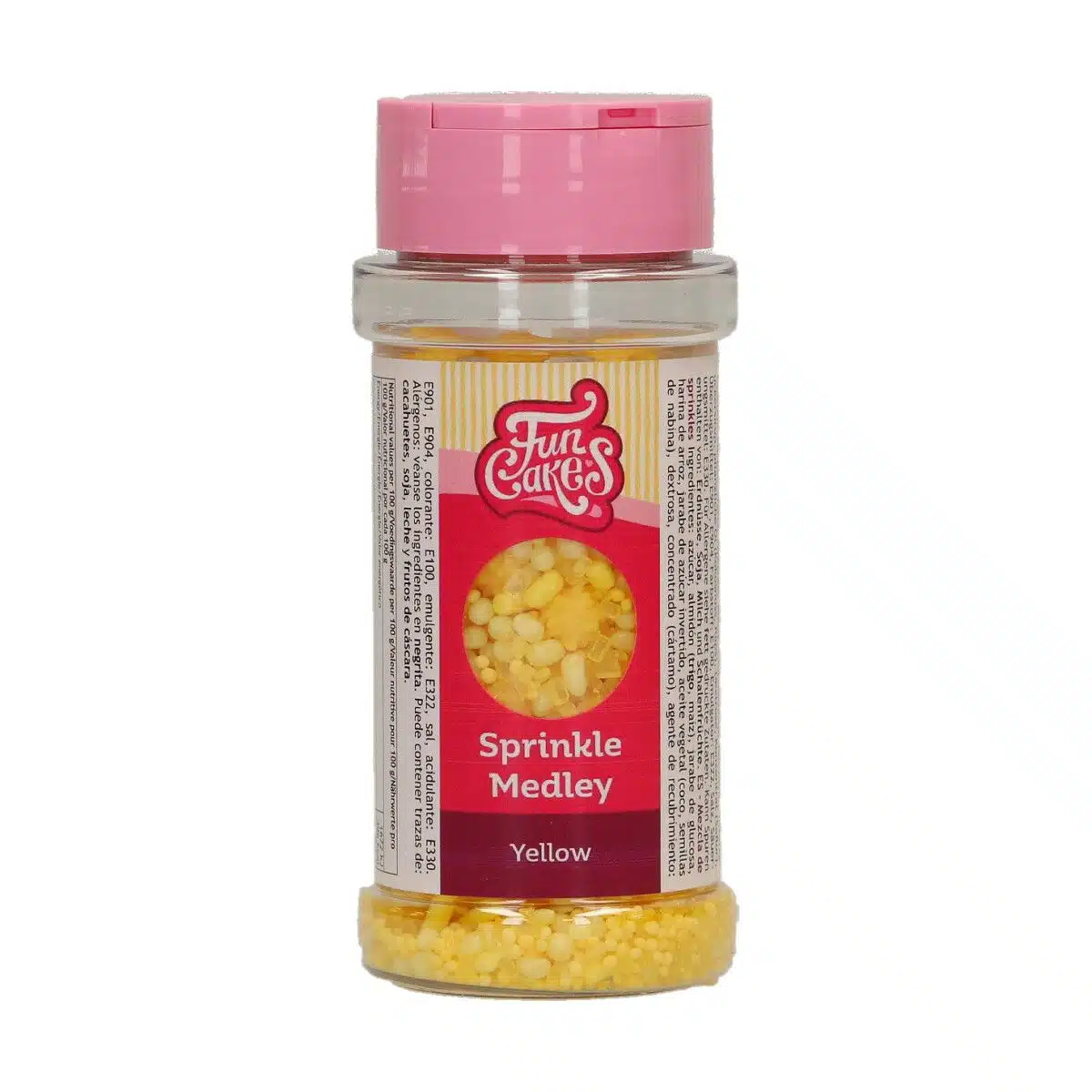 Deze gave gele sprinkle medley van FunCakes is perfect voor het decoreren van cupcakes, taarten, cakepops en nog veel meer! De vrolijke gele kleur van de medley is perfect voor bijvoorbeeld een kindertaart of cupcake traktaties, maar je kunt de medley natuurlijk ook heel goed combineren met andere kleuren! Je kunt het zo gek niet bedenken of de sprinkle medley past er prima bij!