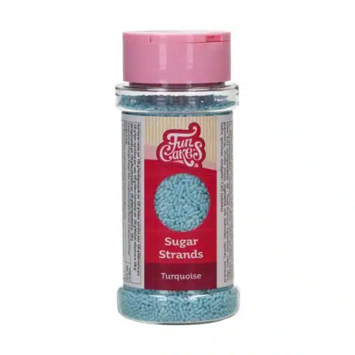 FunCakes Sugar Strands Turquoise zijn vrolijk blauw gekleurde, kleine suikerstaafjes, ideaal voor het decoreren van al jouw traktaties! Cupcakes, koekjes, taart, brownie of meer: deze turquoise / blauwe hagelslag geeft een leuk en kleurig effect op alles wat je bakt en trakteert! Gebruik ze bijvoorbeeld voor een Cookie Monster effect of op voorjaarscupcakes!