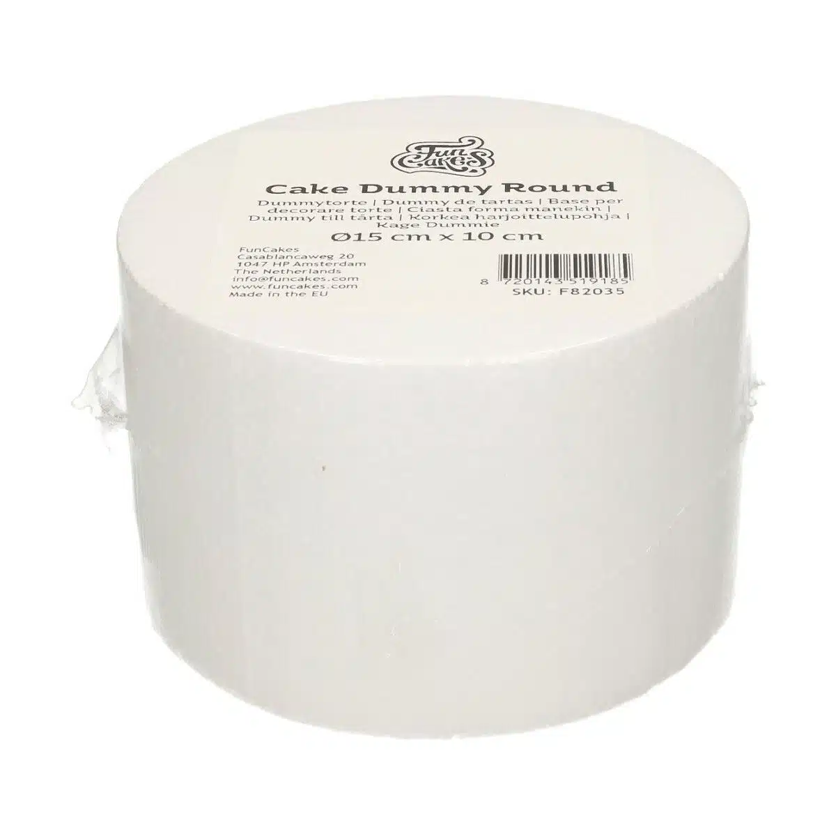 Fijne taart dummy, gemaakt van piepschuim (polystyreen), voor het maken van nep- en showtaarten. De dummy heeft strakke randen wat hem perfect maakt voor het bekleden met fondant.