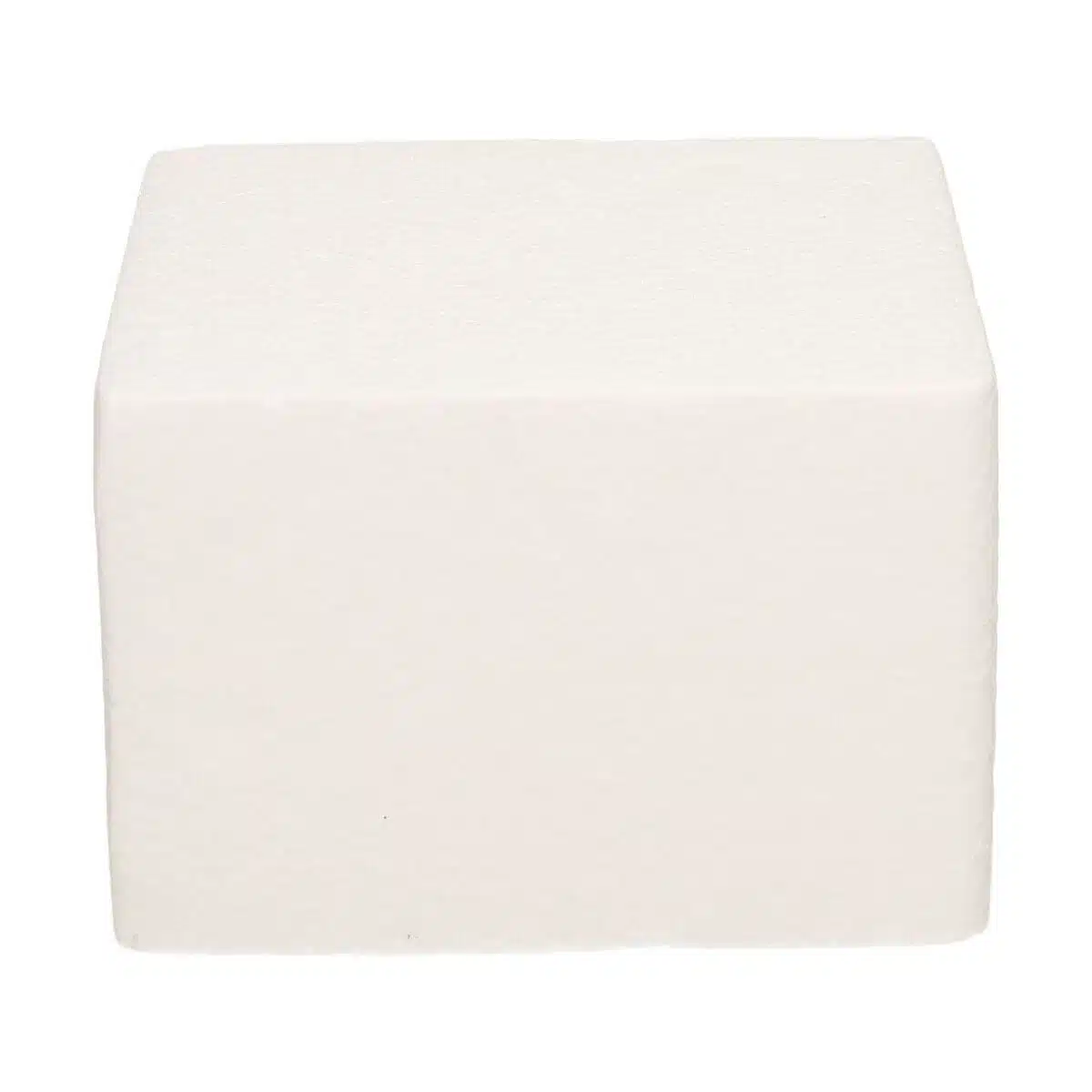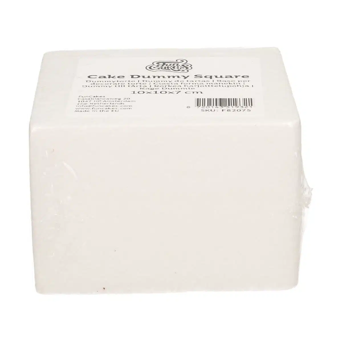 Strakke kleine vierkante taart dummy, gemaakt van piepschuim (polystyreen), voor het maken van nep- en showtaarten. De dummy heeft strakke randen wat hem perfect maakt voor het bekleden met fondant. Leuk als klein onderdeel van een taart!