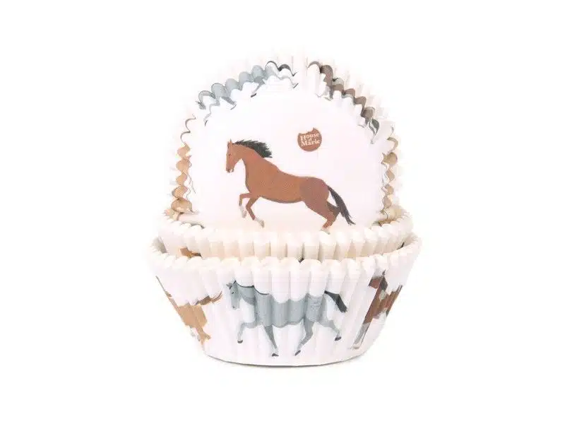 Geweldige baking cups voor een paarden fan! Deze baking cups van House of Marie hebben een leuke paarden print waar elk paardenmeisje of -jongen blij van wordt! Bak cupcakes, brownies en ander lekkers in deze gave baking cups.