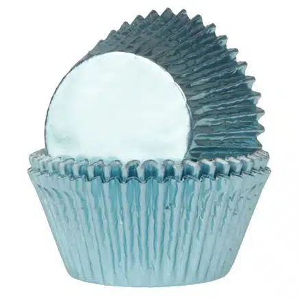 Mooie blauwe mini baking cups voor het bakken van mini cupcakes. De baking cups hebben een metallic look wat je mini cupcakes en muffins een mooie uitstraling geeft.