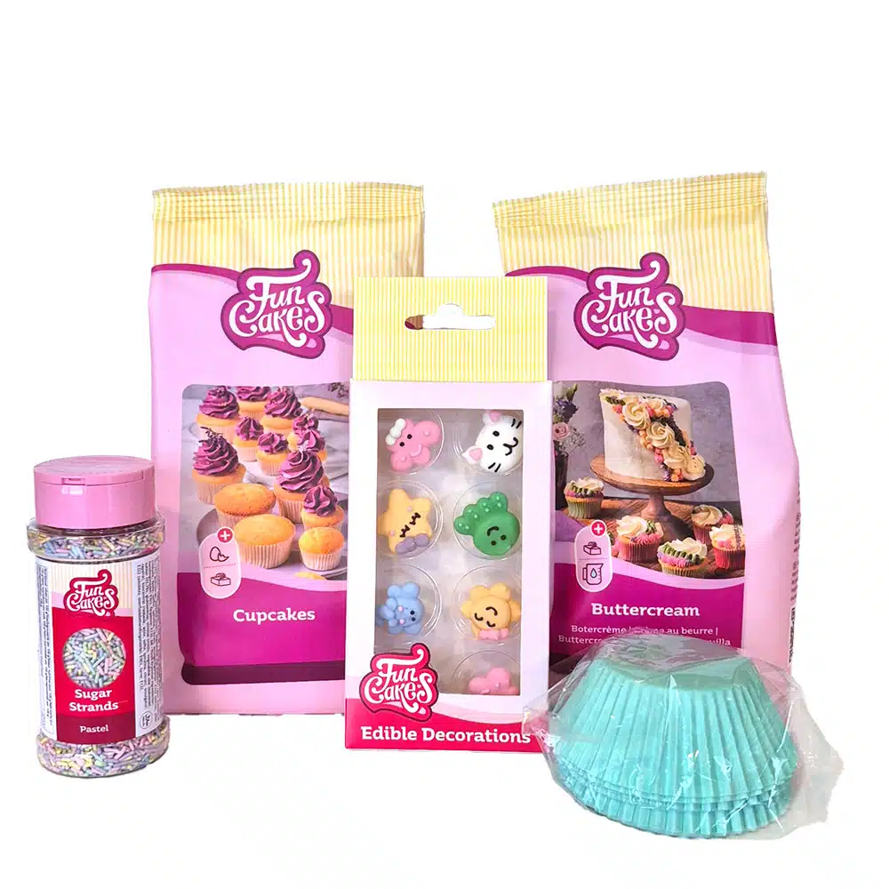 Zijn ze niet superschattig, die leuke Kawaii figuurtjes? Met de suikerdecoraties van FunCakes maak je je cupcakes helemaal af, daarom hebben we er een leuk pakket mee gemaakt! Zo maak jij eenvoudig en snel superschattige cupcakes. Voeg een beetje kleur toe, bijvoorbeeld roze of mintgroen, en je traktatie is helemaal compleet!