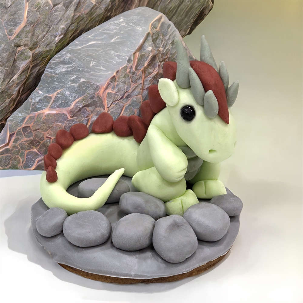 Tijdens het workshopje van ongeveer een uurtje gaan de kinderen een grappig draakje modelleren. Met fondant wordt het lijfje gevormd, het hoofd en het draakje krijgt spikes en andere stekeltjes. Natuurlijk moet er een ondergrond zijn, dat is een lekker gebakken koekje! Dit koekje wordt ook nog bekleed en gedecoreerd, daarna komt het draakje er op. Past dat wel, met zijn lange staart? Vàst wel!