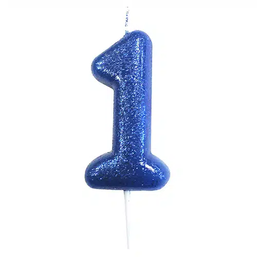 Number 1 Glitter Moulded Candle Blue