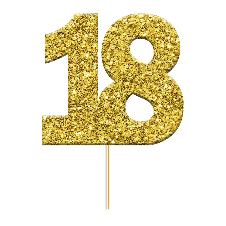 18 jaar worden, dat is een hele speciale verjaardag! Vier het met deze mooie gouden glitterende cupcake toppers met het getal 18. Plaats de prikker in een cupcake met een mooie toef daarop en presenteer deze traktatie op het feestje!
