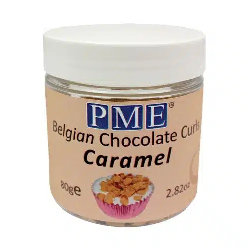 De chocolade krullen caramel van PME hebben een overheerlijke caramel smaak. De Belgische chocolade krullen zijn ideaal voor het decoreren van bijvoorbeeld slagroomtaarten, cupcakes en desserts.
