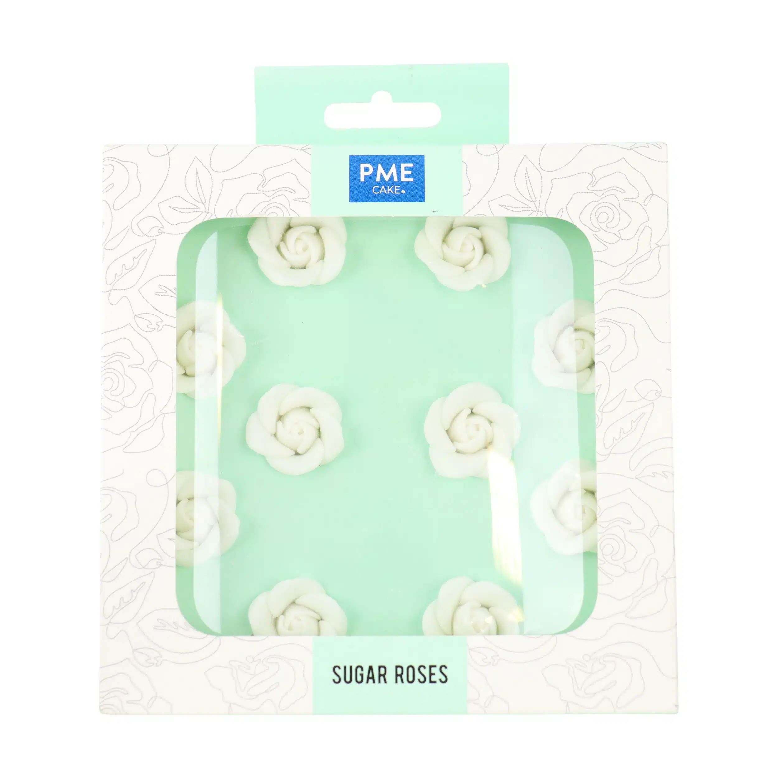 Deze prachtige handgemaakte suikerrozen van PME zijn perfect om te gebruiken voor al je traktaties. De kant-en-klare witte rozen besparen je veel tijd, in tegenstelling tot het zelf met de hand maken van rozen. De bloemen zijn eetbaar en smaken zelfs lekker. Je kunt de witte rozen kleuren met sprays, poeder en verf om ze zo aan te passen naar je eigen ontwerp.