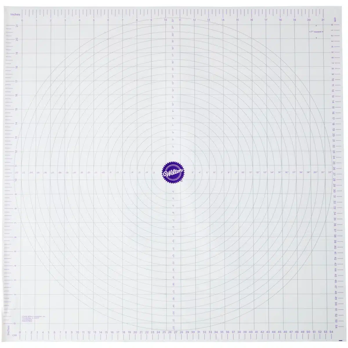 Met de Wilton Roll N Cut Mat is het werken met fondant, marsepein of deeg extra eenvoudig. De handige kunststof werkmat is perfect geschikt voor het meten, uitrollen en snijden van fondant, marsepein of deeg. Op de mat vind je vooraf gemarkeerde cirkels en lijnen die het makkelijk maken om de juiste maat te bepalen en uit te snijden. Met deze mat kun je fondant of marsepein uitrollen tot het formaat om taart te bekleden met een maximale afmeting van 10 hoog en x 35 cm. doorsnede.