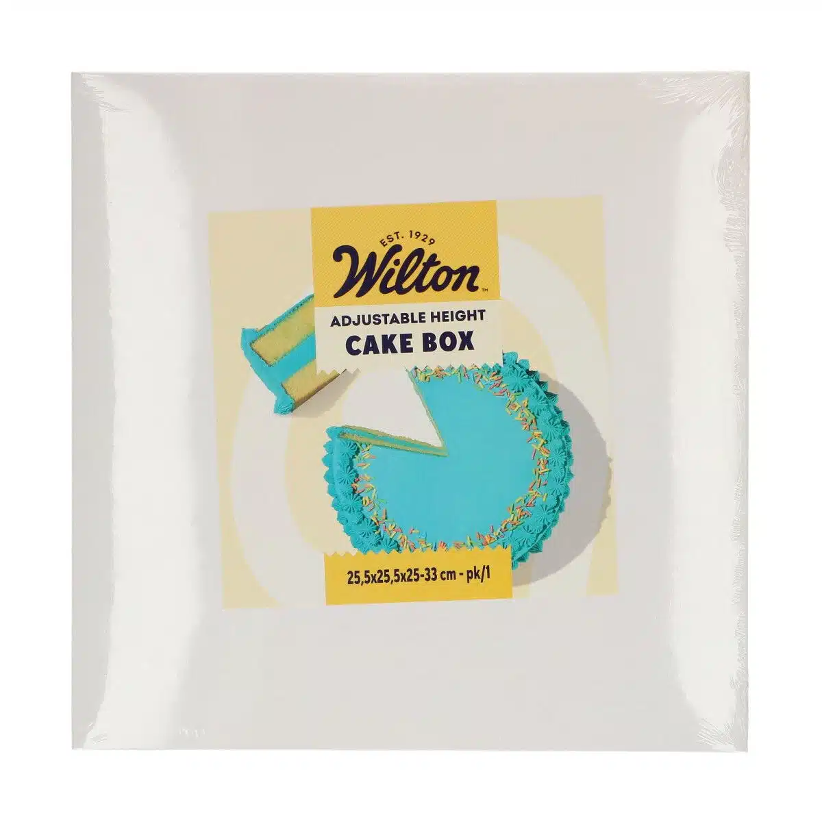 Vervoer je hogere taarten veilig met de Wilton Taartdoos met verstelbare hoogte. De cake box heeft drie verstelbare hoogten, heeft een los deksel en is de perfecte oplossing voor jouw hogere taarten! De doos heeft verstelbare lipjes aan de zijkanten, zodat je de plaatsing van de deksel kunt aanpassen. Zo zorg je ervoor dat jouw taart er perfect in past.