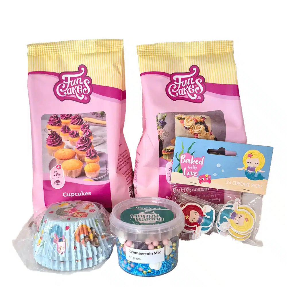 Bak de lekkerste en leukste mermaid cupcakes zelf met dit complete pakket. Een leukere traktatie voor een kleine waterfan is eigenlijk niet denkbaar!